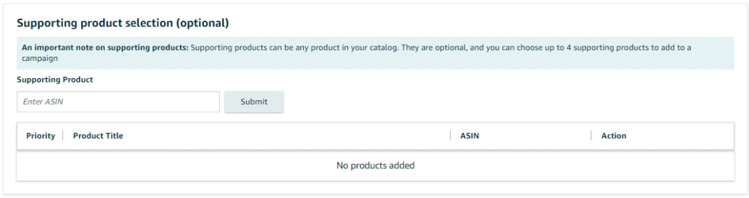 然后你还可以选择最多四个ASIN的一起营销。直接在下图界面添加即可