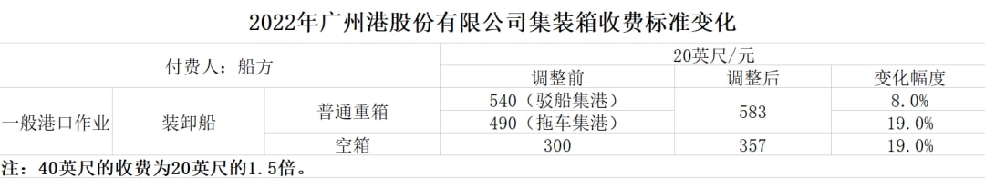 广州港将于2021年1月1日开始收取外贸集装箱装卸费,收费上涨明细如下图所示: