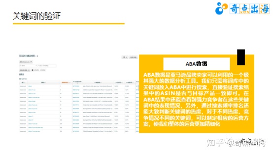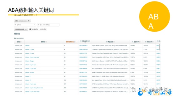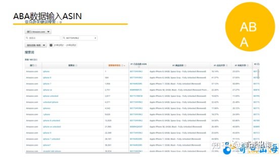 或者也可以使用ABA数据,将我们选取的关键词放入ABA数据中进行搜索,可以直接验证搜索结果中的ASIN是否与目标产品一致,还可以查看到其他竞争对手在这个关键词中的表现情况,我们可以针对这些进行调整优化。