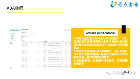 ABA(Amazon Brand Analytics)可以说是我们品牌卖家的“王炸”工具。亚马逊的数据非常封闭,我们很难像在国内某宝那样通过平台看到很多有价值的数据,但是当你拥有了品牌之后你可以直接查看到亚马逊官方的关键词搜索热度、点击率以及转化率的表现情况,对产品关键词的数据一目了然!