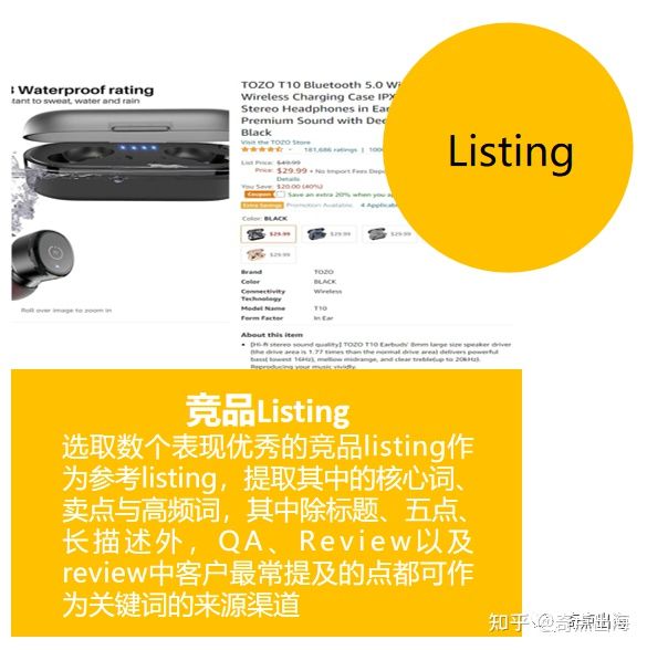 参考排名靠前的竞品的标题、五点及描述甚至是review与QA,从中选取关键词作为参考。